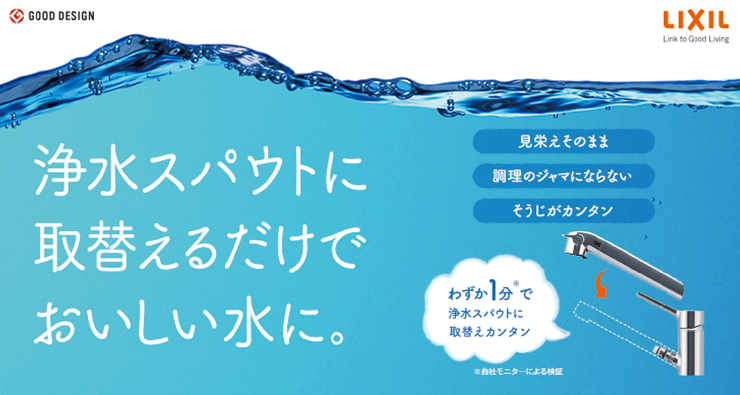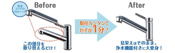 水栓のスパウト(ヘッド)部分を交換するだけで、浄水器に大変身!