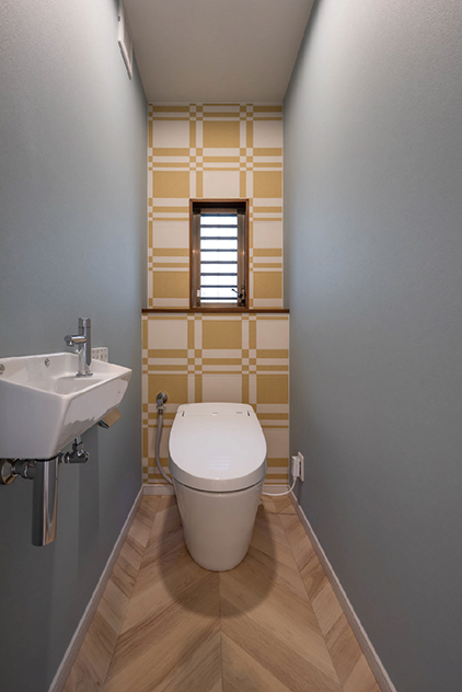 奥さまのご実家を二世帯住宅に改築。RC造で壁構造のため、間取り変更には制限がありましたが、内装ではアクセントクロスやエコカラットで新居らしさのある空間を演出しました。インテリアイメージは、無印良品やカリモクの家具を揃えるというお話を伺いましたので、シンプルながら暖かみのある内装に仕上げました。